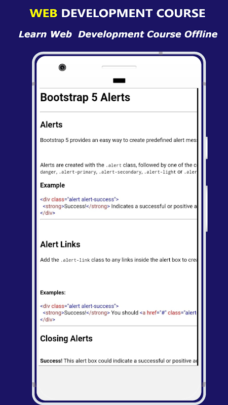 Jika Anda ingin mempelajari kursus lengkap pengembangan web, aplikasi Kursus Pengembangan Web ini mengajarkan Anda cara merancang dan mengembangkan situs web dan aplikasi web HTML, CSS, dan Bootstrap. Tutorial offline Pelajari Kursus Pengembangan Web adalah aplikasi yang mudah digunakan, Anda tidak memerlukan konektivitas internet. Aplikasi tidak diragukan lagi adalah aplikasi pengembangan web terlengkap yang tersedia di toko. Bahkan jika Anda tidak memiliki pengalaman pemrograman, kursus ini akan membawa Anda dari pemula hingga mahir.