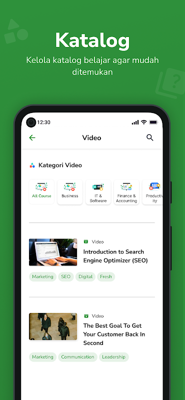 Belajar secara fleksibel dengan 5000+ materi, mulai dari e-book, video hingga kursus interaktif