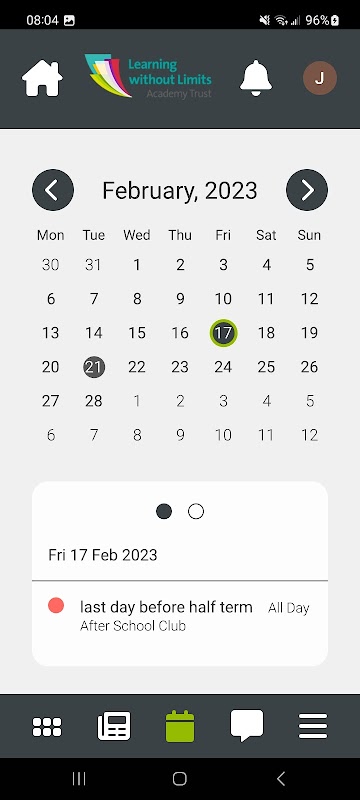 • Melihat kalender dan papan pengumuman Akademi, berisi informasi yang relevan bagi Anda dan anak Anda.