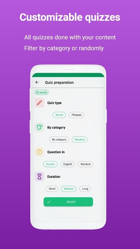 Flashcard, konten kustom tanpa batas, dan kuis kustom.