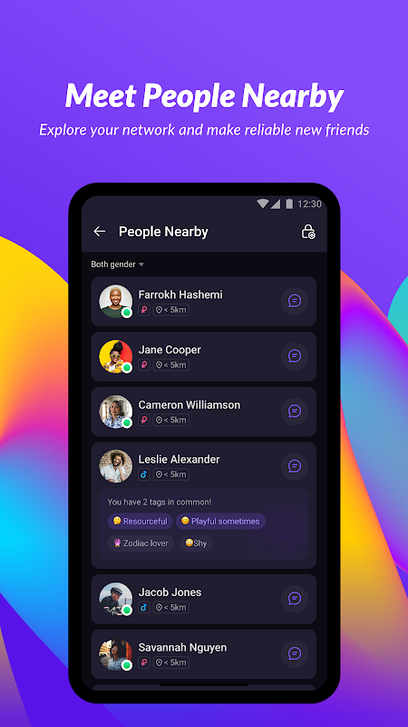 * Temui teman baru di sekitar dan jelajahi jaringan Anda.