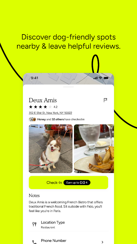 Dapatkan teman baru yang menyayangi anjing sama seperti Anda. Temukan dan mengobrol dengan pemilik hewan peliharaan di sekitar Anda, bagikan petualangan Anda, dan atur teman bermain — langsung melalui aplikasi.