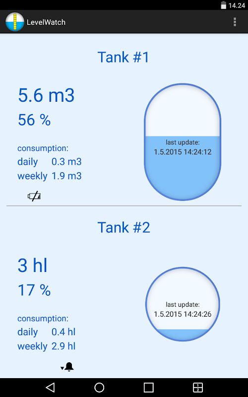 Aplikasi LevelWatch menghubungkan perangkat Android Anda secara nirkabel dengan sensor level tangki LevelWatch.