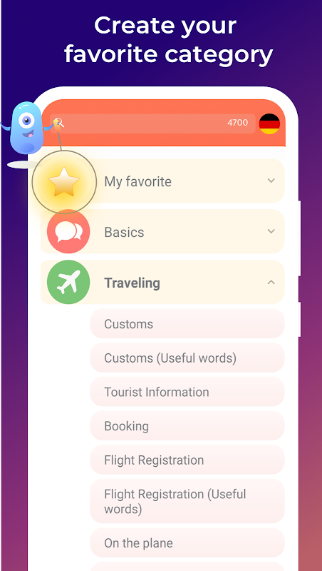 Lexilize Phrasebookj contains over 4700 commonly used German phrases and vocabularies for travelers and beginners in 15 categories: