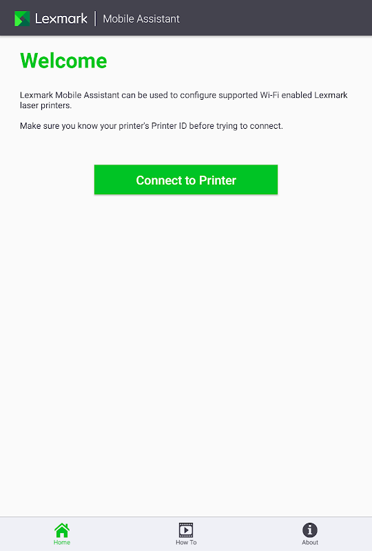 Lexmark Ponsel Asisten memungkinkan Anda untuk melakukan penyiapan awal printer Lexmark Anda melalui perangkat mobile Anda. Aplikasi ini menggunakan setup wizard awal untuk pengalaman pengguna yang konsisten terlepas dari printer Lexmark dan antarmuka.