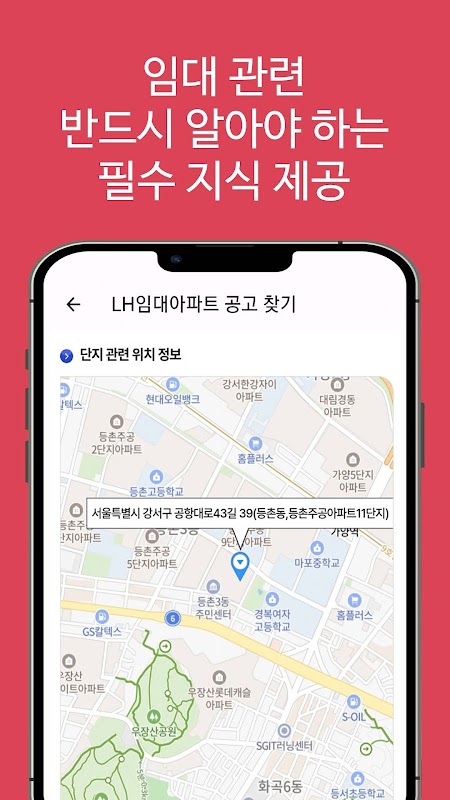 Aplikasi ini merupakan aplikasi swasta tidak resmi yang tidak terkait dengan Korea Land and Housing Corporation (LH). Aplikasi ini menyediakan informasi berdasarkan data yang disediakan oleh Portal Data Publik dan Korea Land and Housing Corporation.