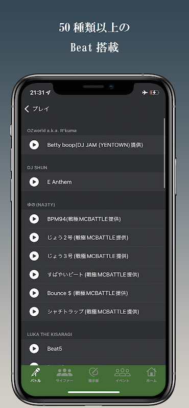 Aplikasi MC battle & cipher online Dilengkapi dengan 60 jenis ketukan Pertempuran MC panggilan video mendadak dengan lawan yang dicocokkan secara acak Cipher juga memiliki fungsi penonton
