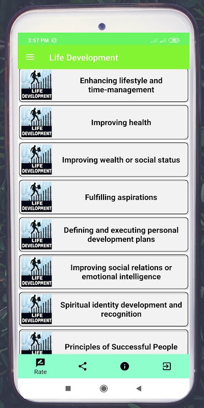 Life Development By reading this app you will be able to know and learn in detail how to do your Personal Life Development. How to change your life development and how to change the power of thinking is discussed in detail. Improving self-knowledge and Improving skills With this app you can improve your life with training. How To Build Your Self Confidence You can learn what to think about in order to build self-confidence. Learn how to change bad habits. Hope you get all the ideas to change your life from the app.