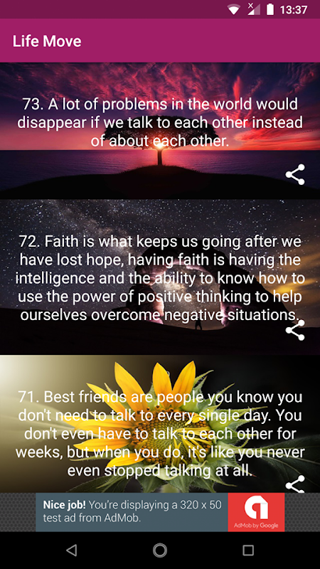 Ini adalah aplikasi sederhana, cukup unduh dan instal dan lewati. Jika ada kutipan, pernyataan mengilhami Anda untuk merasa bebas untuk berbagi. Untuk berbagi adalah kepedulian dan perhatian yang meningkatkan pertumbuhan manusia yang positif.