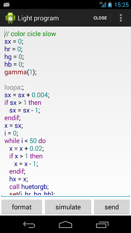 IDE untuk Mesin Cahaya. Perhatian: Hal ini membutuhkan Arduino dengan RGB modul hardware.