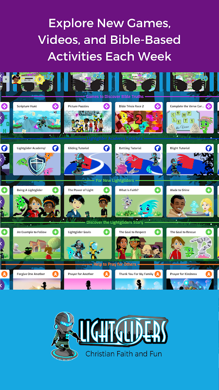 Masuklah ke Lightgliders untuk merasakan dunia virtual iman Kristen, permainan, dan komunitas! Lightgliders adalah permainan daring multipemain dengan misi yang menarik, kalender acara komunitas, dan aktivitas mingguan yang mendorong iman dan nilai-nilai alkitabiah! Mainkan permainan yang menyenangkan dan tonton video untuk menaikkan level Lightglider Anda dan membuka lebih banyak hal yang dapat dilakukan di Akademi. Hadiri acara dalam permainan untuk bertemu teman-teman baru dan mendapatkan pakaian, topi, dan item eksklusif lainnya untuk menyesuaikan karakter Anda. Pelajari bagaimana Anda diciptakan untuk bersinar dengan aktivitas berbasis Alkitab yang diperbarui setiap minggu. Minta orang tua Anda untuk mendapatkan Lightgliders untuk komputer, tablet, atau ponsel pintar Anda hari ini!