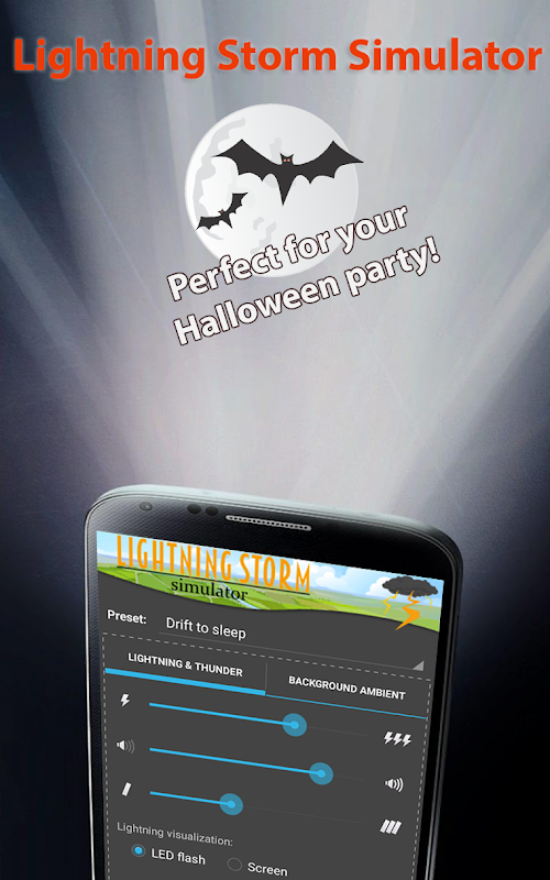 Simulator Badai Petir menghasilkan badai petir dinamis dengan masukan visual dan suara! Mulai aplikasi dan kilat akan menyambar di depan mata Anda, dan menerangi seluruh ruangan. Untuk ekstra nyata, gunakan speaker dan lampu kilat LED.