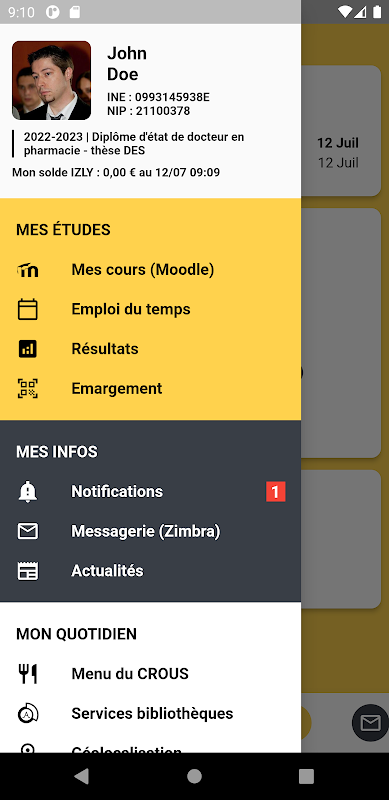 Mahasiswa di Universitas Lille, masuk dengan kredensial THT Anda dan manfaatkan semua fitur yang ditawarkan oleh aplikasi: