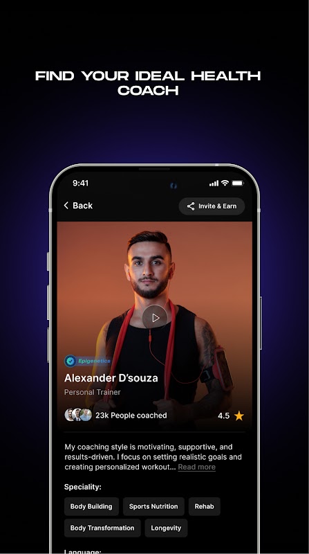 • Pelatih: Terhubung dengan pelatih kesehatan dan kebugaran bersertifikat untuk panduan, motivasi, dan dukungan personal dalam perjalanan kesehatan Anda.