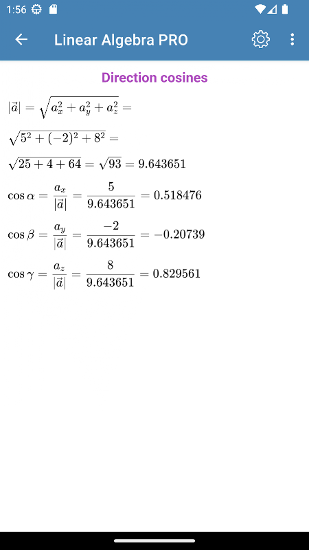 Matriks Aljabar Linear dan perhitungan Vektor, pemecah langkah demi langkah, versi Pro