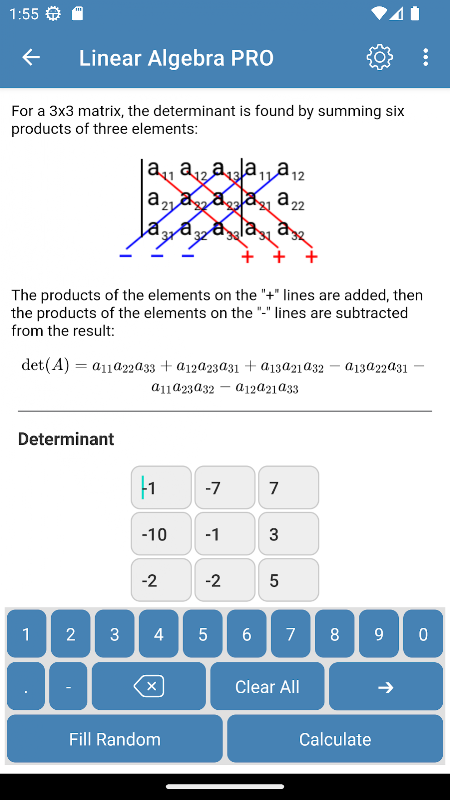 Aplikasi perhitungan matriks, determinan dan vektor merupakan alat yang sangat berguna. Ini dirancang untuk pelajar dan insinyur yang menggunakan perhitungan matriks dalam studi atau pekerjaan mereka.