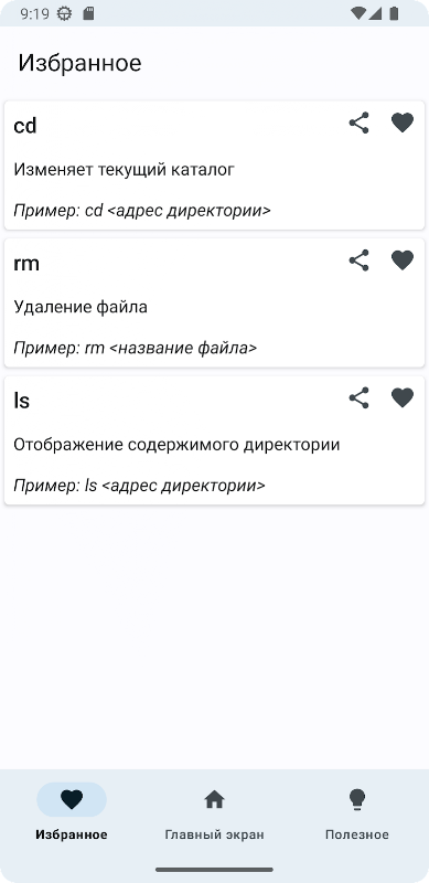 Linux Helper adalah aplikasi yang menyediakan kursus pengantar dunia Linux. Apendiks berisi daftar perintah, dibagi berdasarkan tugas, untuk mengelola Linux dengan contoh penggunaan. Di sini Anda dapat menambahkan tim ke favorit Anda untuk akses cepat, atau mengirim seluruh konten bagian ke tempat yang nyaman bagi pengguna. Juga di dalam aplikasi terdapat informasi untuk pengguna Linux pemula, yang memberikan gambaran tentang sistem ini.