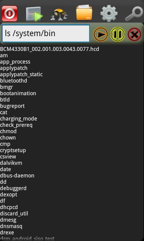• Pause/resume function for looping commands such as (top,vmstat,logcat)