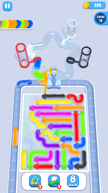 Liquid Master lebih dari sekadar permainan puzzle—ini adalah pengalaman yang lancar dan imersif. Tanpa pengatur waktu, tanpa tekanan, tanpa stres. Anda dapat menikmati tantangan mencocokkan warna yang menenangkan dengan kecepatan Anda sendiri. Permainan ini mudah dipelajari, namun dirancang dengan cerdas untuk membuat Anda terus berpikir di setiap langkah. Fitur Utama: