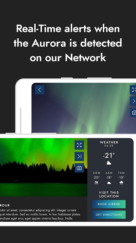 The only truly real-time video alert app available globally - the unique algorithm not only detects the aurora borealis, but visually grades it based on the strength of the aurora. Users can choose the level they wish to be notified at so that they need only hit the road for displays they deem suitable.