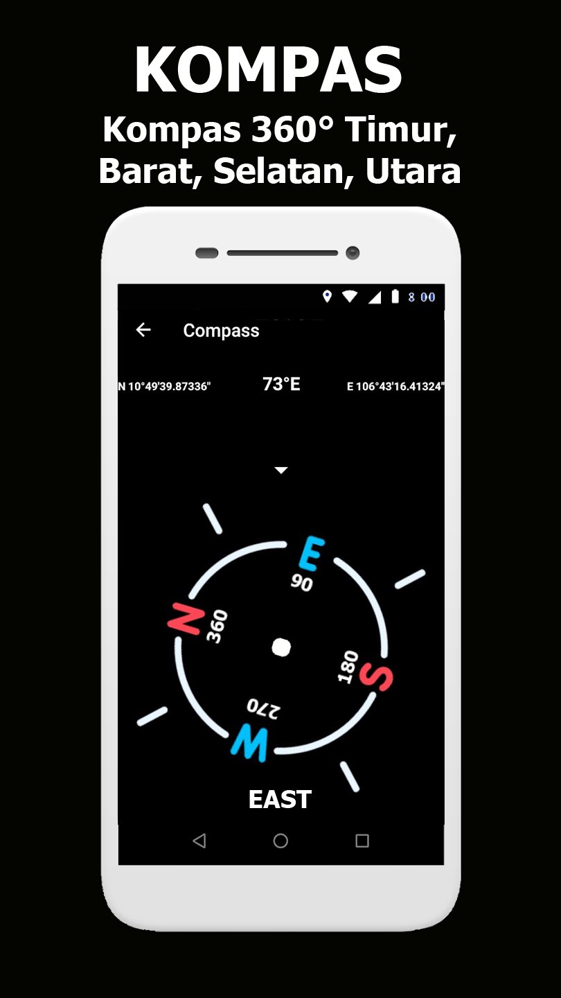 Kompas dengan arah timur barat selatan utara, kompas 360° dapat menghitung sudut ke segala arah dengan memutar perangkat.
