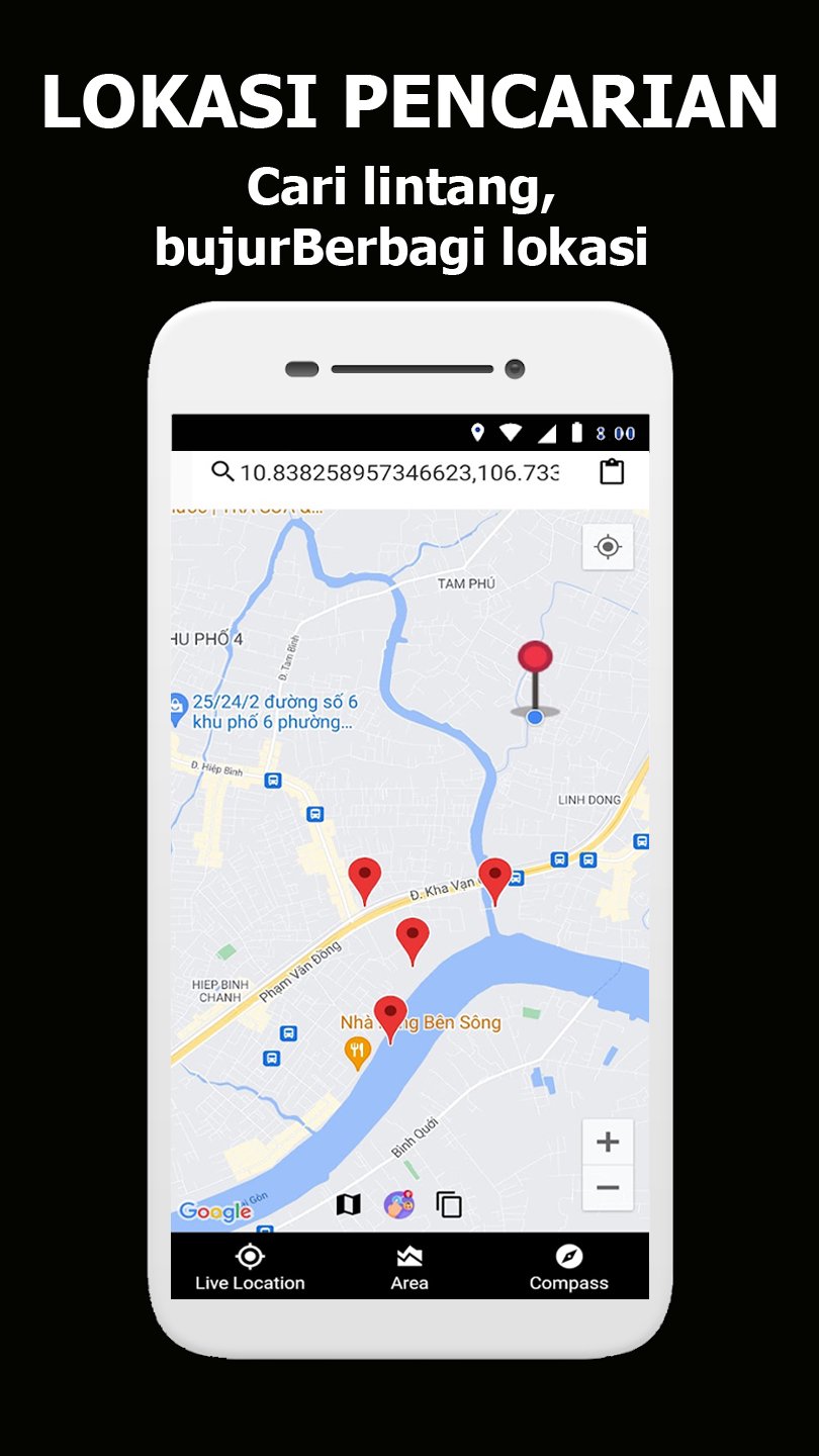 Pengukuran jarak dan luas, pelacak lokasi langsung Anda secara real-time.