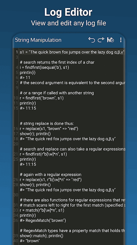 Some of the features that make Log Viewer the perfect solution for viewing and editing log files on your phone include:
