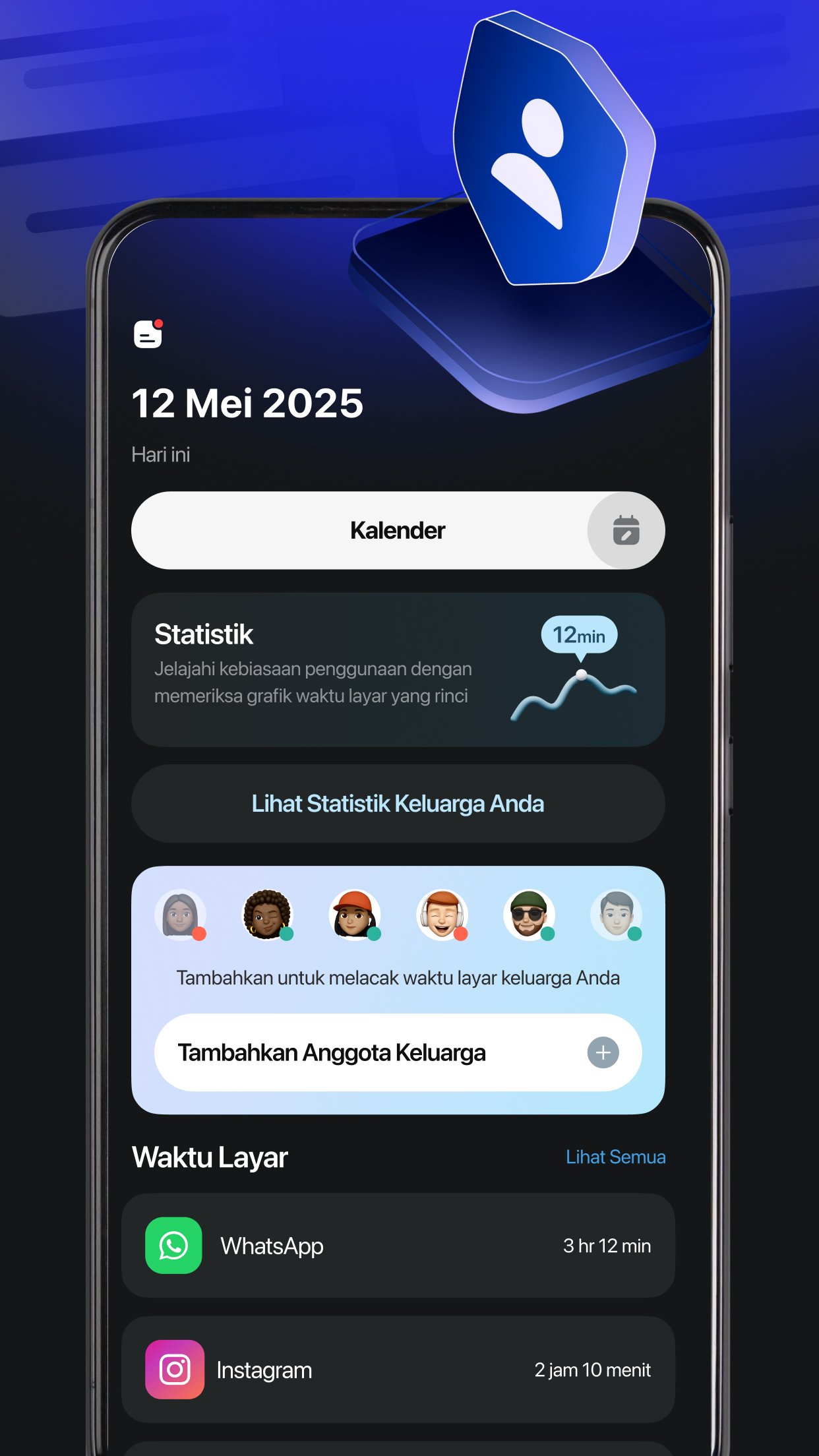 • Lihat statistik penggunaan harian/mingguan