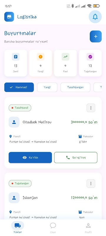 Logistica adalah aplikasi seluler modern yang dirancang untuk mengelola layanan angkutan, pesanan klien, dan operasi pengemudi secara efisien. Lacak pengiriman, kelola pesanan, dan dapatkan informasi terkini dengan data logistik secara real-time.