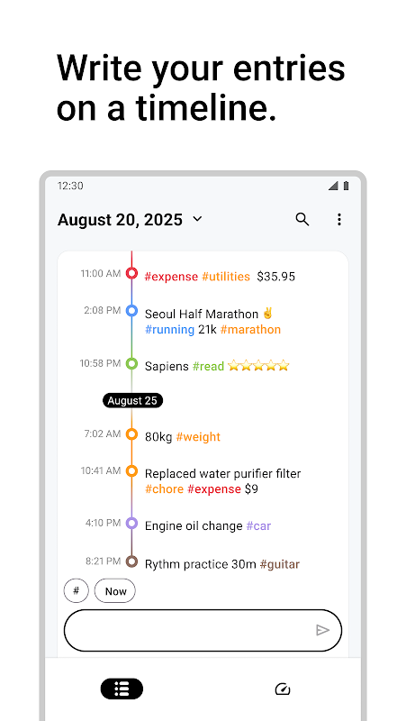 ✔️ Tampilan Linimasa – Telusuri semua catatan Anda secara kronologis dalam sekejap.