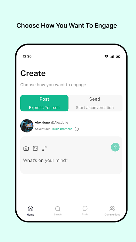 Mulailah dengan Seeds untuk memicu percakapan tentang apa pun yang ada di pikiran Anda. Ketika orang lain terlibat, mereka dapat menjadi Flash Circles - obrolan grup sementara tempat diskusi nyata terjadi. Bergabunglah dengan Komunitas seputar minat Anda dan temukan orang-orang yang memiliki minat yang sama.