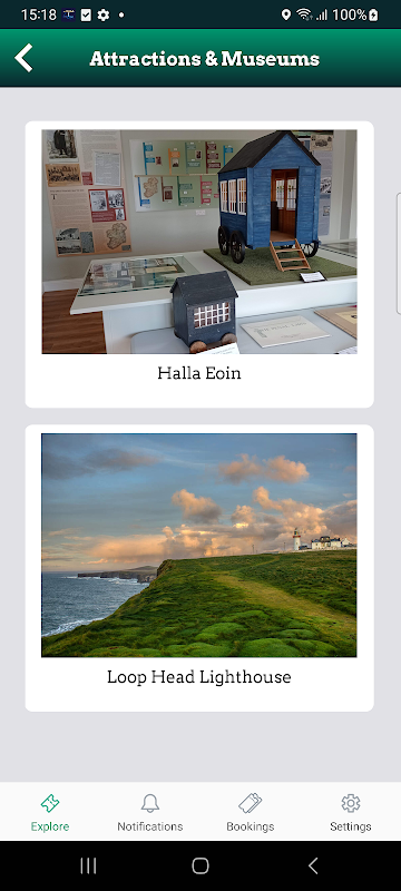 The Loop Head Guide App menawarkan kepada Anda perjalanan pengunjung yang menyoroti kisah-kisah utama, promosi unik, dan elemen yang harus dilihat dari tempat yang Anda kunjungi.
