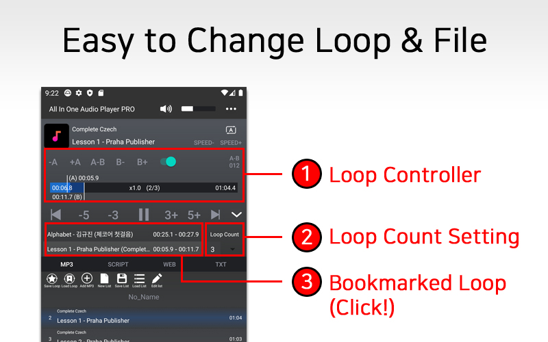 Pemutar Audio ini dikembangkan untuk efisiensi tinggi dalam mempelajari bahasa baru dengan menyediakan fungsi Penting untuk mempelajari bahasa dalam Satu aplikasi.