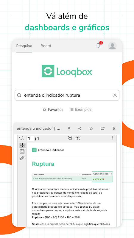 Dengan bantuan Kecerdasan Buatan kami, percepat transformasi data menjadi hasil dengan mengakses informasi operasi Anda dari mana saja. Dapatkan wawasan dan navigasikan data Anda secara sederhana dan cepat dengan kekuatan Looqbox.