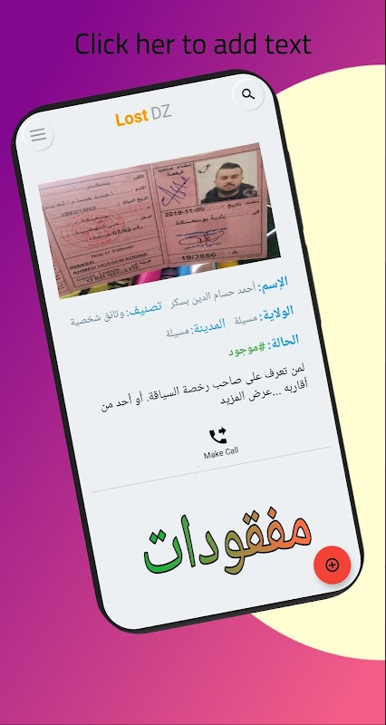 Aplikasi ini adalah portal di mana pengguna dapat mengumumkan barang yang hilang atau ditemukan di dalam Aljazair, yang memudahkan setiap orang untuk menemukan barang mereka yang hilang secepat mungkin melalui pemberitahuan yang menjangkau semua pengguna aplikasi ketika barang hilang atau ditemukan diterbitkan .