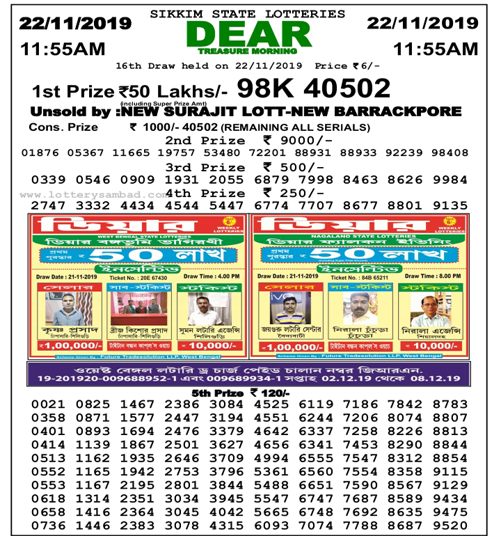 লটারি সংবাদ Today Lottery Results New JPG or PDF You can also get download Nagaland state lottery result here as well. Nagaland lottery result will be updated on the daily basis. Lottery Aaj Fastest Lottery Result & Sambad Stay with us to view and download your all lotteries results.lottery sambad and draw everyday will soon.