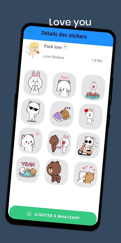 Baixe este aplicativo de adesivos animados românticos for maiores de 18 anos to explore as coleções Heart Awesome de desivos de amor deslumbrantes and adoráveis adesivos de beijo. Dengan kata-kata emoji dalam HD dan kata-kata apa pun yang diinginkan, percakapan Anda akan lebih istimewa. Ekspresikan cinta Anda dengan criatividade dan 100% aman digunakan adalah obrolan cinta yang diinginkan untuk WhatsApp. 🌟❤️