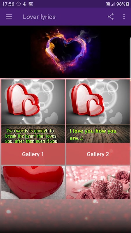 With this application you will get the mind of your lover and enter his eyes. You can share each object in the app with your friends using in-app features (Facebook, whatsapp, youtube, twitter, instagram, etc.) Download and enjoy our "lover lyrics" application now.