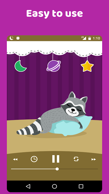 Lullabies can be played in a loop, or randomly. Application does not require an Internet connection, so you can use it anywhere and in aircraft mode.