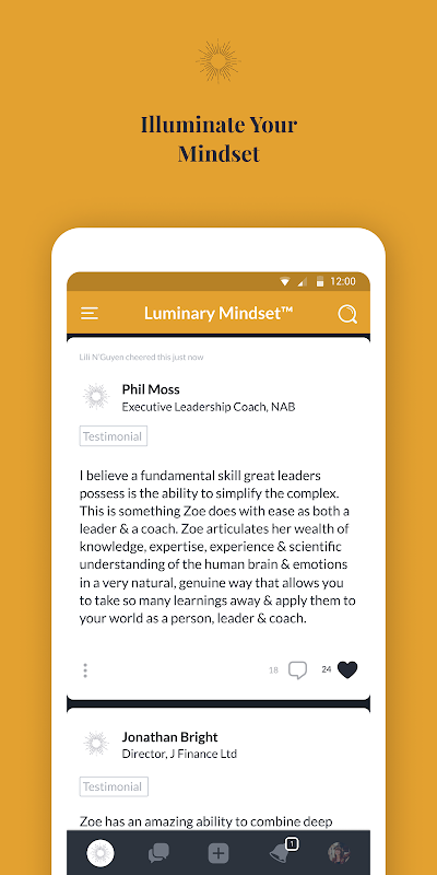 - Access to the Luminary Mindset™ community to share ideas, experiences and discover new ways of elevating your performance and the performance of your teams