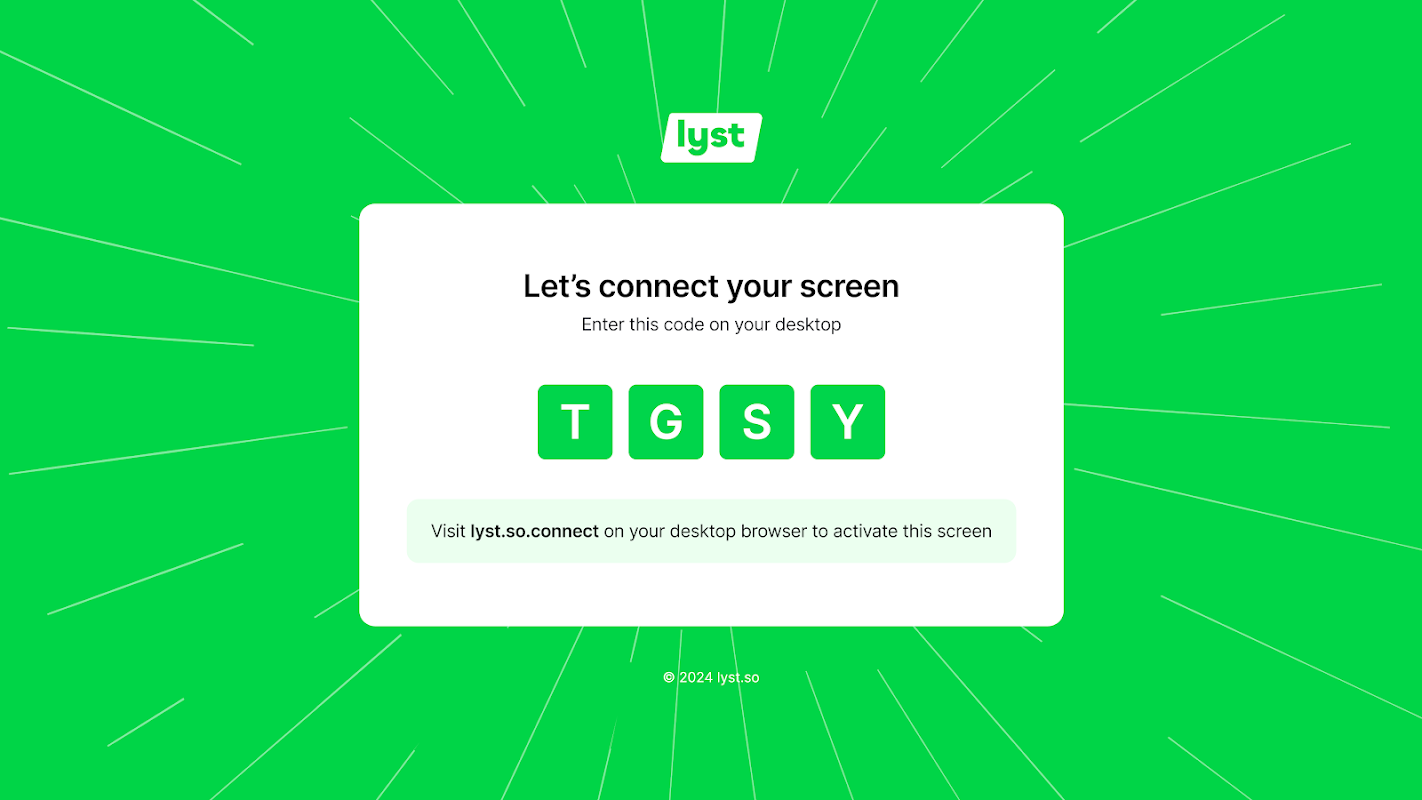 Ubah TV Anda menjadi solusi signage digital cerdas dengan Lyst! Baik untuk bisnis, kantor, kafe, atau acara, Lyst memudahkan untuk menampilkan gambar, video, pengumuman, dan banyak lagi—semuanya dari satu platform