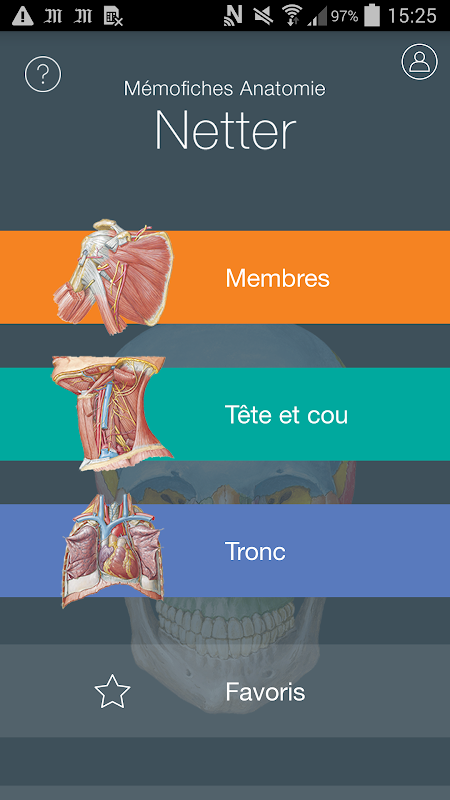 Aplikasi ini berisi konten penuh edisi ke-4 dari tiga volume Mémofiches Netter Anatomi dalam presentasi yang dirancang khusus untuk smartphone dan tablet.
