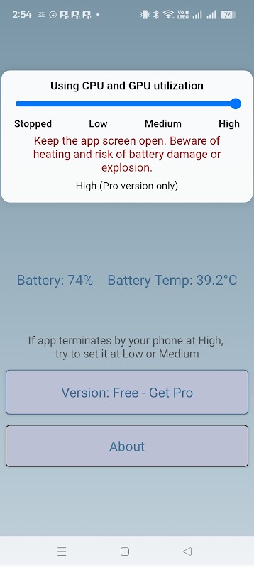 ⚠ Peringatan: Penggunaan yang terlalu lama dapat menyebabkan perangkat Anda menjadi sangat panas. Hal ini dapat menyebabkan kerusakan baterai, berkurangnya masa pakai, atau, dalam kasus ekstrem, ledakan baterai. Gunakan dengan risiko Anda sendiri — kami tidak bertanggung jawab atas kerusakan, kehilangan data, atau cedera apa pun yang diakibatkan oleh penggunaan aplikasi ini.
