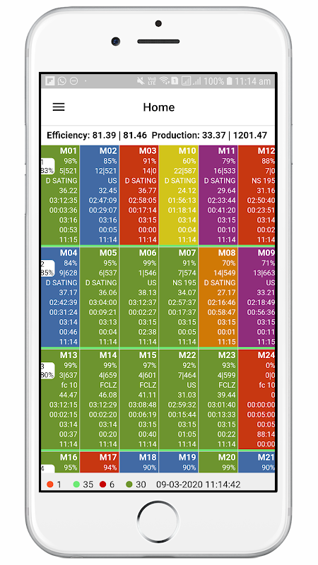 Sistem Pemantauan Mesin yang melacak aktivitas seperti Efisiensi Mesin, Waktu Mesin, Waktu Mesin, Produksi (Meter, Pilih, Jahitan), Tidak Ada Stopage atau Breakage,