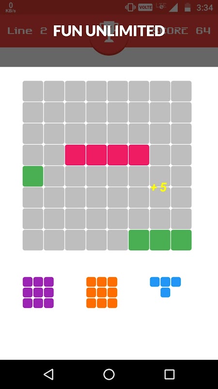 Magic Block is a fun and classic block puzzle brick game. The goal of the block puzzle game is to drag and drop blocks in order to create and destroy full lines on the grid table both vertically and horizontally. If there is no position for the given block on the screen, the game will end. Don't forget to keep space for the blocks from filling the screen.