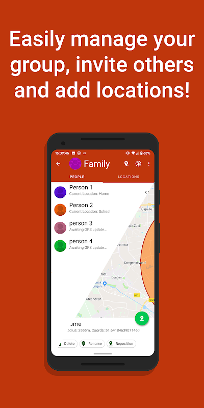 • Privasi! Saat membuat grup, lokasi pasti orang-orang di peta dapat dimatikan untuk privasi yang lebih baik. Jam masih akan bekerja!