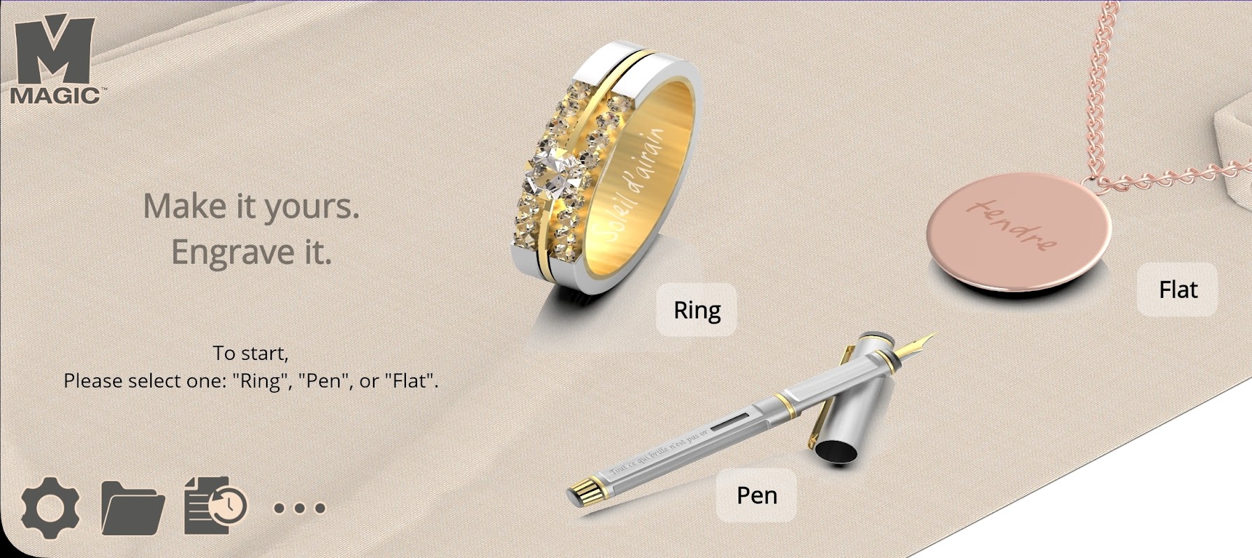 MagicTablet™ adalah aplikasi yang memungkinkan Anda dengan cepat dan mudah merancang dan mengukir ukiran yang dipersonalisasi pada liontin, cincin, pena, hadiah, dan lainnya dengan kontrol sederhana.