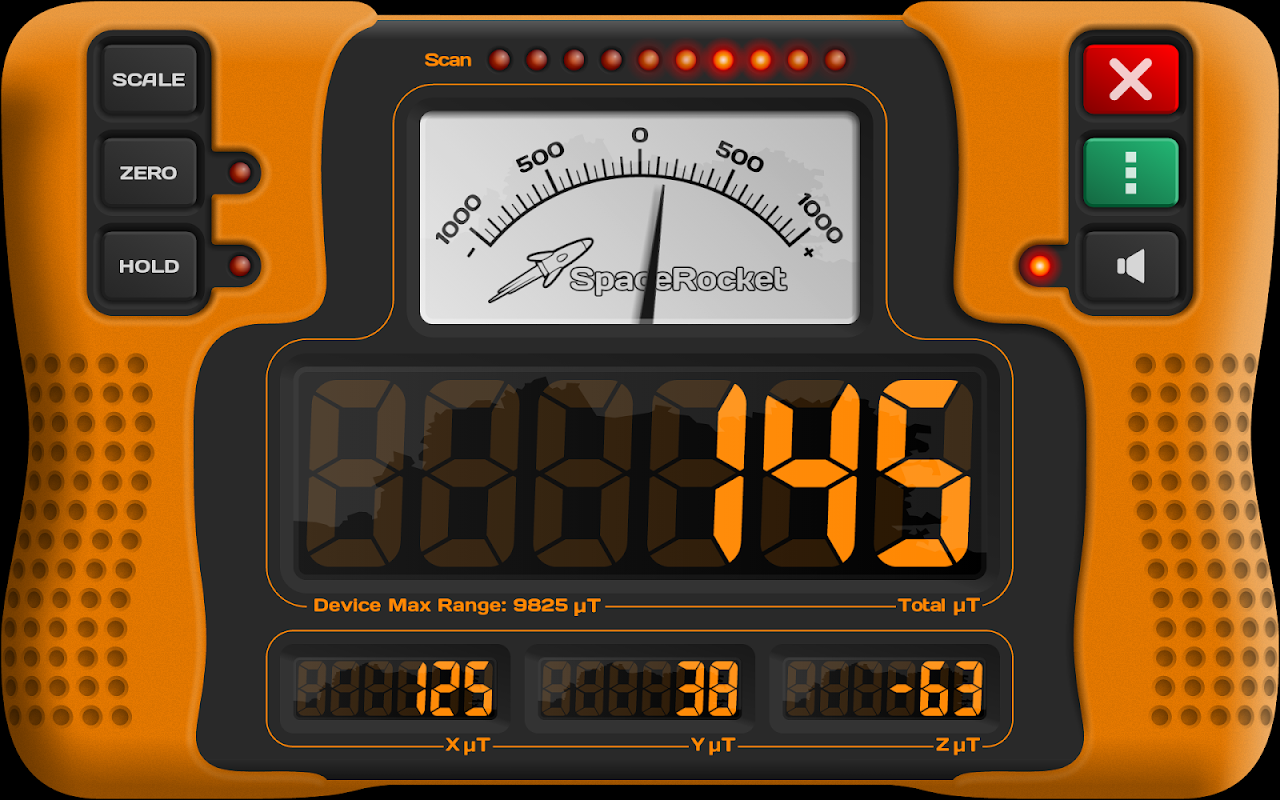 Aplikasi ini menunjukkan hasilnya secara individual (x, y dan z) dan sebagai total gabungan dalam satuan mikro-Tesla (uT). Jarum analog dengan cepat menunjukkan bacaan melompat dari positif ke negatif dan memiliki 3 level pembesaran , ideal untuk menyesuaikan sensitivitas. Fungsi Audio mengubah frekuensi suara untuk memberi tahu Anda kekuatan bidang. Hasil Fungsi Tahan dapat ditahan di layar untuk digunakan nanti. Aplikasi ini juga memiliki Fungsi Nol untuk menghapus bidang latar belakang seperti medan magnet Bumi (30-70 uT). Karena setiap perangkat berbeda, aplikasi kami menunjukkan kepada Anda nilai maksimum yang dapat Anda peroleh dari sensor perangkat Anda. Aplikasi ini mencakup panduan pada cara menggunakan magnetometer, cara mengkalibrasi dan daftar bacaan khas yang akan Anda lakukan temukan di sekitar rumah, bengkel dan kantor.