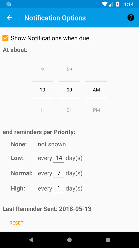Riwayat aktivitas menunjukkan daftar lengkap semua tanggal yang tugas dilakukan dan menunjukkan rata-rata jumlah hari antara tanggal dilakukan. Tekan pada tanggal dilakukan jika Anda perlu untuk mengedit atau menghapus catatan sejarah.