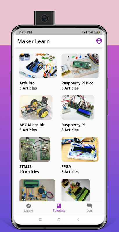 Dengan menggunakan aplikasi ini, Anda dapat membaca artikel tentang Arduino, Raspberry Pi Pico, BBC Micro: Bit, Raspberry Pi, STM32, FPGA dan Microchip PIC.
